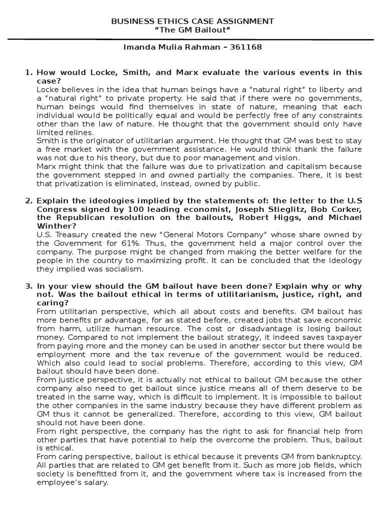 Read Case 9 The Gm Bailout Bailout Employment |